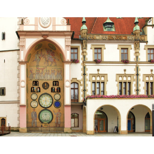 ... Другая доминанта — нарядное здание городской Ратуши XV века, северный фасад которой украшают куранты с астрономическими часами, определяющими время, дни недели, астрономический календарь и фазы Луны. Свой нынешний облик часы обрели в 1950-х годах, это очень любопытный памятник эстетики соцреализма. Куранты украшены мозаикой-медальонами, на которых изображены отдельные виды работ, характерные для того или иного месяца и времени года. ...