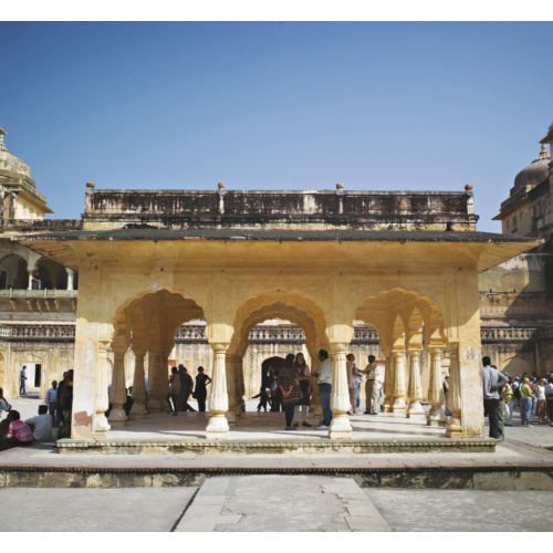 ... В 3 км к востоку от Джайпура расположен храмовый комплекс Галтаджи, к которому вот уже много столетий совершаются массовые паломничества. Несколько зданий с округлыми крышами, изящными колоннами и расписными стенами, выполненными из розового песчаника, находятся между двух водоемов с водопадом. По легенде, когда-то эта территория страдала от острого дефицита воды. Мудрец Галва в течение всей своей жизни молился богам, они смилостивились, и появились целебные источники, дарующие силу и молодость. Благодарные люди в память о событии в VIII–IX веках возвели храмовый комплекс. В одном из бассейнов и ныне происходят постоянные омовения, в другом же купаются «хозяева» комплекса — обезьяны. Галтаджи иногда еще называют «Обезьяний дворец», ведь на его территории проживает более 5000 приматов. ...