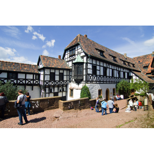 ... В комплексе Южного двора сохранились наиболее древние части замка и в первую очередь крупнейший памятник позднероманского зодчества Германии — дворец тюрингских ландграфов (1170–1240). В XIII веке Вартбург являлся центром миннезингеров, где проводился легендарный конкурс лучших трубадуров Германии «Состязание певцов на Вартбурге». Просторный интерьер знаменитого Зала певцов украшен фресками немецкого художника середины XIX века М. фон Швинда. Им же расписаны комната ландграфа и галерея Святой Елизаветы. Впечатления от фресок фон Швинда вдохновили Ф. Листа на создание оратории «Легенды о святой Елизавете», которая была впервые исполнена в 1867 году в громадном Торжественном зале замка. Неоднократно посещал Айзенах и Вартбург И. В. Гете. Он один из первых подал идею превратить замок в постоянную экспозицию национальной средневековой культуры и начал составление коллекции, куда входили предметы старинной мебели, утвари и произведения искусства. ...