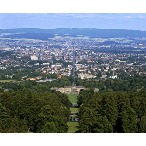 ... На севере земли Гессен, на реке Фульде, стоит старинный Кассель, на протяжении трех столетий бывший столицей могущественного имперского княжества Гессен-Кассель. Как и у многих немецких городов, судьба старого Касселя сложилась драматично: в 1943 году 90% его центра было уничтожено британскими бомбардировщиками. Подобно Дармштадту, его отстроили в современном стиле. Кассель знаменит зелеными парками, которые занимают почти две трети его территории. Самым популярным является дворцово-парковый ансамбль резиденции ландграфов Гессен-Кассельских «Вильгельмсхёэ» (1786–1801) — грандиозный многоуровневый комплекс из каскадов, водопадов и лесистых террас. Центром верхнего парка является фантастический павильон Ризеншлосс, пирамидальную башню которого венчает монументальная медная статуя Геркулеса — это символ Касселя. Гигантский водный каскад начинается на высоте 600 м и спускается по каменным ступенчатым террасам в нижнюю часть парка к ландграфскому дворцу, образуя вместе с ним центральную ось комплекса. Ось продолжается аллеей Вильгельмсхёэ, уходящей в центральную часть города. Дворец Вильхельмсхёэ был перестроен в стиле палладианского классицизма в конце XVIII века. Сегодня в нем размещается Кассельская картинная галерея. Кассель известен также своим Музеем братьев Гримм. Знаменитые филологи прожили здесь 30 лет и подарили миру несколько сборников сказок, а немецкой лингвистике — ряд научных трудов и начало «Немецкого словаря». ...