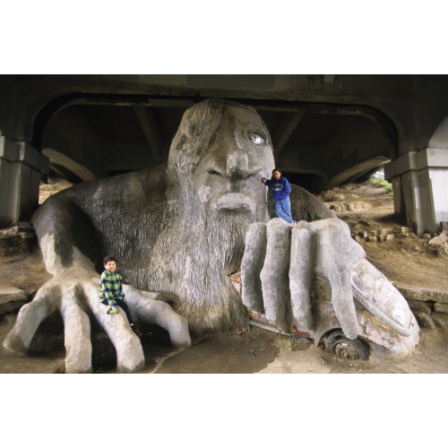 ... Под мостом памяти Джорджа Вашингтона находится огромная скульптура Фримонтского тролля, установленная в 1990 году. Конкурсный проект, результатом которого стало рождение необычной достопримечательности, был направлен на очистку территории под мостом от мусора. Тролль, изготовленный из стали, бетона и тросов, массой около 2 т и высотой более 5 м, отныне зорко следит за порядком на вверенной ему земле. В начале XXI века одна из соседних улиц даже была переименована в Тролль-авеню. ...