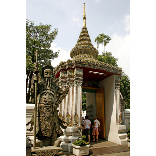 ... Трехуровневая крыша храма покрыта позолотой, а само здание охраняют 12 бронзовых львов. Внутри стены богато украшены фресками, изображающими сцены из жизни Будды. Сюда разрешен вход любому желающему, но босиком и в одежде, прикрывающей колени и плечи. Фотографировать святыню категорически запрещено. При входе можно нанять гида или взять в аренду аудиогид. После посещения Королевского дворца стоит отправиться к расположившимся неподалеку святыням — храму Лежащего Будды (ват Пхо) и храму Утренней зари (ват Арун). ...