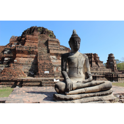 ... Древние руины находятся в парковой зоне острова, образованного рекой Чаупхрая. Среди многообразия строений и того, что от них осталось, особо стоит выделить ват Пхра Махатхат. Его название указывает на то, что он был возведен для хранения останков Будды. Ват Пхра Махатхат интересен, в первую очередь, благодаря каменной голове Будды, оплетенной корнями дерева и безмятежно улыбающейся посетителям. В центральном пранге в золотой шкатулке когда-то хранились мощи Будды. В 1950 году в уже разрушенном храмовом комплексе удалось обнаружить и драгоценную шкатулку, и множество других реликвий, которые сейчас находятся в музее Чао Сам Пхрая. Внутри пранга остались следы настенной живописи, а с его развалин открывается интересный вид: наклоненные под различными углами высокие шпили, разбросанные тут и там безголовые статуи Будды, а чуть дальше, на востоке, мерцающие воды озера, возле которого разбит пышный парк. ...