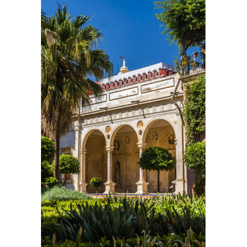 ... Дом Пилата сочетает в своей архитектуре мудехар, ренессанс и античный стиль. Существует много версий происхождения названия замка. По одной, он является копией виллы Понтия Пилата в Иерусалиме. Владелец дома Фадрике Энрикес после паломничества на Святую землю решил воссоздать в Севилье маршрут Иисуса на Голгофу с 14 остановками, отмеченными крестами. И первым пунктом стал его дом, который было решено построить по проекту виллы римского префекта. Другая версия гласит, что владелец здания получил от римского папы Пия VI столб, у которого бичевали Христа при Пилате. Итальянские мастера исполнили мраморный портал и фамильный герб. Дворик украшают фонтан и статуя в римском стиле. Аркада из изящных мраморных колонн дополнена балюстрадой. Несущие стены оформлены расписанной глиняной плиткой азулежу. ...