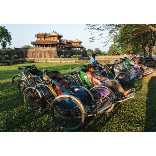 ... Главными являлись южные ворота Нгомон, у них имеются 5 разных входов, предназначенных для императора, его слонов, военных и прочих. С балюстрады ворот король и придворные наблюдали за парадами, оглашали указы и зачитывали лунный календарь. Сразу за воротами Нгана стоят «9 священных орудий» — артиллерия, символизирующая защиту королевства. Из пушек никогда не стреляли, их почитают в качестве 5 ритуальных элементов: огня, воды, металла, дерева и земли. Также на территории цитадели находятся 9 урн с прахом правителей Нгуен. ...