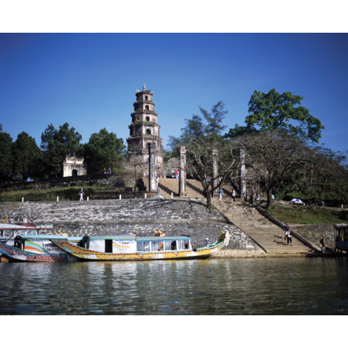 ... Пагода Тхиенму построена в 1601 году и является одним из важных символов города. Она состоит из 7 ярусов, в ней располагается огромный колокол весом 2600 кг — его слышно в радиусе 10 км. Еще иногда данное сооружение называют храмом Чудесной Госпожи, ведь, по преданию, оно построено на том месте, где одному из правителей явилась Небесная леди, она умоляла народ молиться на этом холме за процветание страны. Ныне внутри пагоды можно увидеть скульптурный образ большой мраморной черепахи как символа долголетия государства и его жителей и статую Будды Майтреи. На территории также установлено несколько ступ, в которых покоятся останки буддистских монахов и подвижников. ...