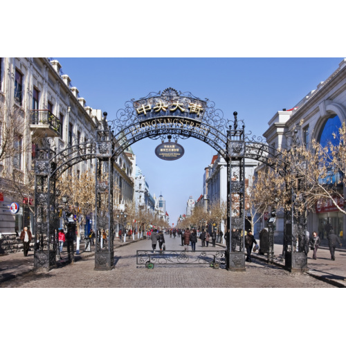 ... Центром Харбина является улица, когда-то носившая название Китайская, ныне — Центральная. Она начинается от памятника Героям борьбы с наводнениями и заканчивается в районе пересечения с улицей Цзинвэйцзе. Туристы из России именуют ее Арбатом из-за сходства со знаменитой московской пешеходной зоной. Это красивейшая улица Харбина длиной около 1,5 км, на которой сосредоточено 120 специализированных магазинов, ресторанов и кафе. Одно из самых знаменитых зданий — гостиница «Модерн», именно здесь когда-то останавливался знаменитый российский певец конца XIX — начала XX века Ф. И. Шаляпин. ...