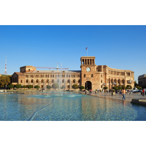 ... Одним из красивейших мест города, соединившим в своем архитектурном облике черты древности и современности, является центральная площадь Республики. Начало ее строительства приходится на 1924 год, когда главным архитектором Еревана был Александр Туманян. В настоящее время здесь находятся пять зданий: Музейного комплекса (в него входят Государственный исторический музей Армении и Государственная картинная галерея), правительства Армении (на нем установлены главные часы страны), гостиницы «Мариотт Армения», министерств иностранных дел и энергетики и центральное здание почты. Их фасады украшены древнеармянской орнаментальной резьбой, все они выполнены в одном стиле и из одного материала. Перед музеем — знаменитые поющие фонтаны, меняющие в зависимости от музыкальной композиции цвет и напор воды. На одной из улиц, примыкающих к площади, установлено ни много ни мало 2750 питьевых фонтанчиков (ровно столько, сколько было лет городу Еревану на момент их установки). Вода в них чистая и очень вкусная. ...