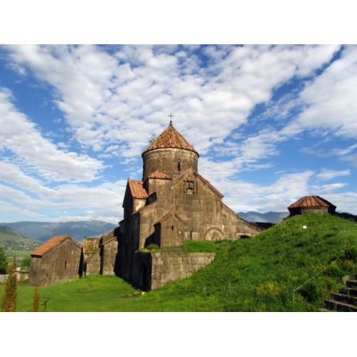... В нескольких километрах от Санаина расположена другая обитель — Ахпат, время создания которой относится примерно к X веку. На ее территории имеются церкви, часовни, книгохранилище, колокольни. Ахпатская колокольня — самая ранняя в Армении из сооружений подобного назначения, а книгохранилище говорит о высокой просвещенности населения того времени. Известно, что в Ахпате была очень богатая библиотека, одно из ее сокровищ — Ахпатское Евангелие (1211 год), над которым работал миниатюрист Маргаре. В крупнейшей церкви комплекса Сурб Ншан прекрасно сохранились скульптурные композиции, фрагменты росписи алтаря, а также уникальные фрески. Также на территории Ахпата существует галерея с большим количеством разнообразных хачкаров. ...