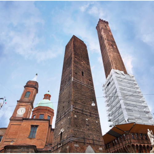... Часто знатные люди средневековой Болоньи, чтобы подчеркнуть статус и богатство, строили высокие башни, в них они и жили, и защищались от неприятеля, хотя были времена, когда в борьбе за власть в городе врагами становились местные жители. Два символа Болоньи, две башни — Азинелли и Гаризенда — стоят рядом, на небольшой площади. Каждая имеет наклон, Азинелли отклонилась от оси на 97 см, а Гаризенда — на 3 м. Сегодня на Азинелли с удовольствием взбираются туристы, в прошлом же она использовалась как тюрьма и крепость. А вот на башню Гаризенда подниматься, конечно, нельзя, зато она знаменита тем, что упомянута в «Божественной комедии» Данте: «Как Гаризенда, если стать под свес, Вершину словно клонит понемногу Навстречу туче в высоте небес...» ...