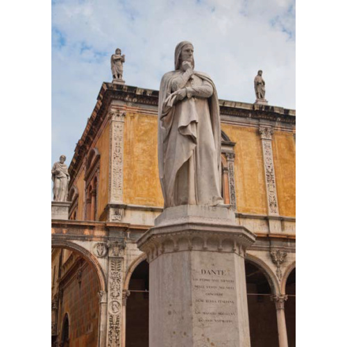 ... В Вероне есть свой, хорошо сохранившийся Колизей, который немногим уступает римскому. На этом месте проводились гладиаторские бои, а когда заливали амфитеатр водой — устраивали морские состязания; случались и страшные казни, и кровавые схватки собак и быков. Сегодня здесь проводятся концерты, оперные фестивали и спектакли. После изгнания из Флоренции Данте Алигьери 13 лет прожил в Вероне. В честь его очередной годовщины на площади Синьории был установлен 18-метровый мраморный памятник — статуя «Данте Алигьери» скульптора Уго Заннони. Данте в лавровом венце на голове придерживает одной рукой плащ, а в другой держит книгу и, глубоко задумавшись, смотрит вдаль. Рядом с памятником располагается уютное кафе «Данте», в интерьере и оформлении которого использовано много элементов с изображением поэта. ...