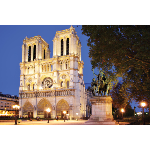 ... Собор Парижской Богоматери предстает во всем своем великолепии. Высота главного шпиля — 90 м, башен — 70 м. Здание длиной 130 м и шириной 48 м может вместить 9000 человек. Элегантность архитектуры и гармония пропорций заставляют забыть о таких огромных размерах. Собор расположен на острове Сите и построен на месте, где стояла галло-римская часовня, а затем, на заре христианства, — базилика. Шедевр, ставший национальным достоянием Франции, был возведен в 1163 году. ...