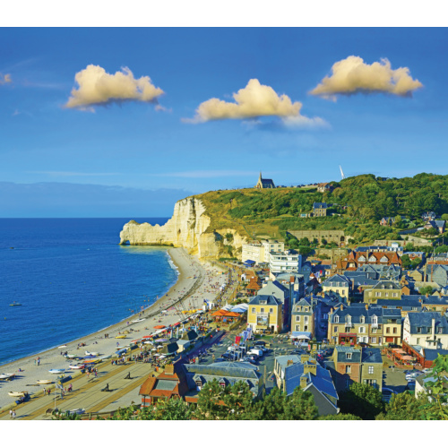 ... Побережье Ла-Манша — это широкие песчаные и галечные пляжи на юге, переходящие к северу в отвесные скалы и суровые утесы; это берега с такими поэтичными названиями, как Алебастровый, Цветущий, Перламутровый; это курортная зона, где находятся знаменитые курорты: роскошный Довиль, элегантный Трувиль, живописный Онфлёр — колыбель импрессионизма, причудливо-скалистый Этрета. Мягкий океанический климат позволил создать множество мест, где можно отдохнуть, поиграть в гольф, насладиться прекрасными видами и пляжами, побродить по обнажившемуся дну во время отлива, собирая устриц, мидий и ракушки, заняться конным и парусным спортом, посетить казино, отведать блюда из свежайших морепродуктов и оздоровиться. Бальнеологические курорты Нормандии с талассотерапией (ванны из морской воды, грязей, водорослей и песка) известны во всем мире. Эти места привлекали не только парижскую аристократию, но и богему, людей искусства, находивших здесь вдохновение для творчества. ...