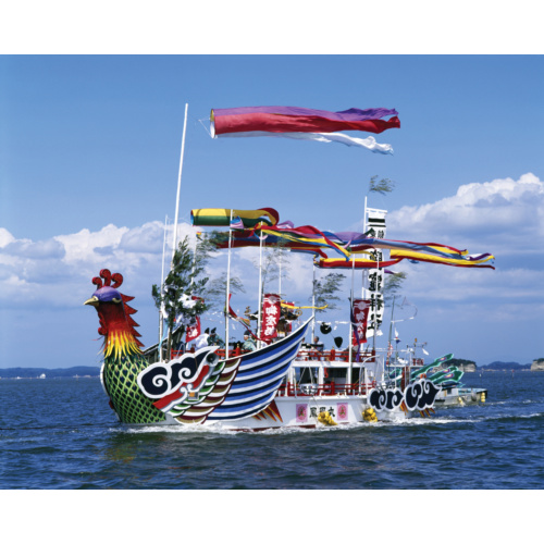 ... В провинции Тохоку можно увидеть потрясающий по красоте залив Мацусима, что переводится как «сосновый остров». Это одно из трех природных чудес Японии. По темно-синей глади моря разбросано около 200 белых каменистых островов, покрытых сосновыми рощами. Мелкие представляют собой необитаемые заросли, а более крупные соединены невысокими красными мостами, самый длинный из которых (250 м) перекинут с материка на остров Фукуума-дзима, где разбит ботанический сад. По заливу ходят самые разные суда, начиная от обычных весельных лодок и традиционных джонок до катеров, украшенных головами драконов и змей. ...