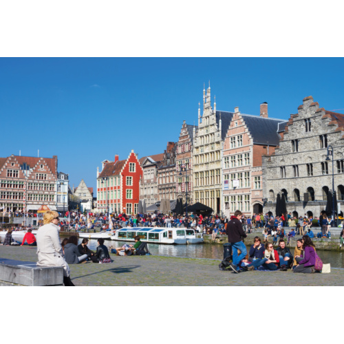 ... Дома гильдий в Генте необычайно разнообразны и расположены не только на центральных площадях, но и вдоль реки. На площади Коренмаркт («Зернового рынка») — Дом гильдии каменщиков в стиле брабантской готики. Его фасад напоминает театральный, на изящных столбиках легкого ступенчатого фронтона «танцуют» фигурки человечков. Лодочная прогулка по Лейе позволит рассмотреть здания по обеим сторонам реки: на набережных Граслей и Коренлей. ...