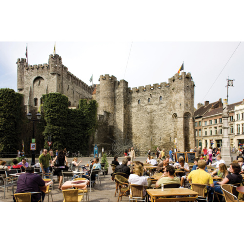... Памятник романской эпохи — Гравенстен (Графский замок), возведенный в 1180 году, — неприступная цитадель, одна из старейших в Европе, система обороны которой сохранилась с XII векапочти без изменений. Стеныс 24 выступающими башнями особенно мрачными выглядят со стороны реки. До XIV столетия крепость с мощным донжоном была резиденцией графов Фландрии, затем монетным двором, зданием суда и тюрьмой. Сейчас здесь разместились выставка оружия и доспехов, а также экспозиция Музея пыток с орудиями «труда» служителей правосудия. ...