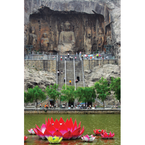 ... В пещерно-храмовом комплексе Лунмэньшику, что переводится как «Драконовые ворота», сохранились выдающиеся произведения изобразительного искусства позднего периода династий Северная Вэй и Тан. Комплекс раскинулся на двух горах, разделенных узкой долиной и рекой Ишуй. Здесь находятся более 2500 храмовых пещер, около 100 000 скульптурных и настенных изображений Будды и более 2000 надписей. Среди них есть исторические данные, философские изречения, а в пещере Яофандун и гроте Цяньцзиньфан записаны древние лекарственные рецепты и даже первый китайский трактат по медицине. Почти все стены пещер украшены одинаковыми резными лотосами, между тем буддийские статуи, как большие — по 17 и 14 м, так и миниатюрные — не более 2 см, несколько отличаются по портретному изображению принца Шакьямуни. Если в произведениях периода династий Северная Вэй в лицах Будды во многом повторены черты императоров, то мастерски выполненная скульптура династии Тан уже несет в себе явные признаки национального искусства, ряд фигур даже облачен в китайские халаты. Эти потрясающие реликвии Лунмэньшику поражают масштабом и великолепием. ...