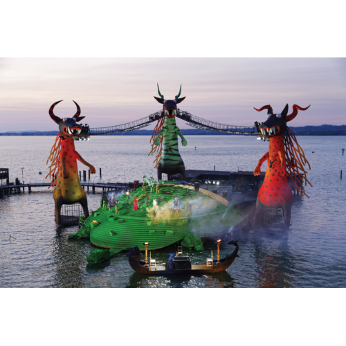 ... Прямо на озере, на сваях, выстроена Озерная сцена. Зрительный зал почти на 7000 мест амфитеатром расположился на берегу. Здесь ежегодно проходит Брегенский фестиваль, во время которого звучат произведения разных жанров. Одно из великолепнейших действий — оперные постановки на «плавающей» сцене. Роскошные декорации, уникальная акустика и красота пейзажа — неизменные составляющие успеха. ...
